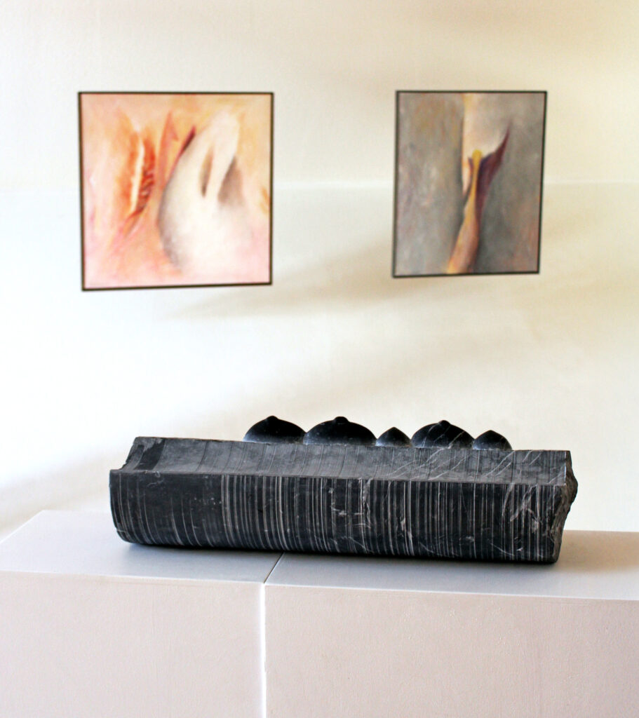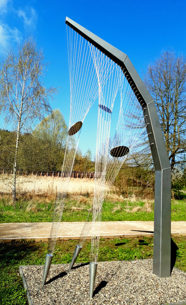 Die Großskulptur „Aufbruch“ finden Sie auf dem Skulpturenweg Bad Gandersheim – Lamspringe, die Großskulptur „Lichtes Träumen“ im Auepark von Bad Gandersheim.